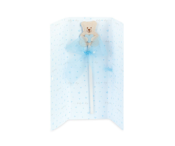 Matita orsetto cuore azzurro con busta. Dimensione cm. 21. cod.29300