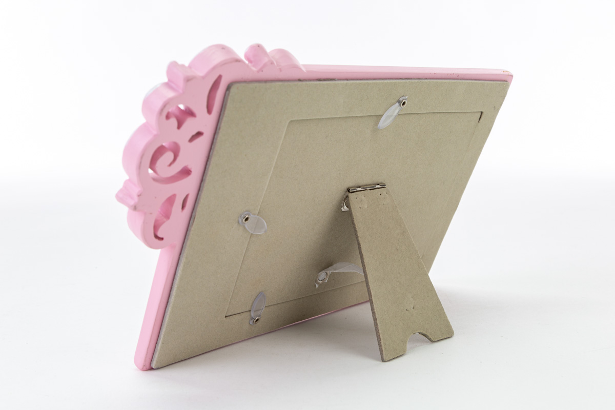 Portafoto in resina con decoro albero della vita colore rosa. Misura cm.25×16. Misura interna cm.15×10