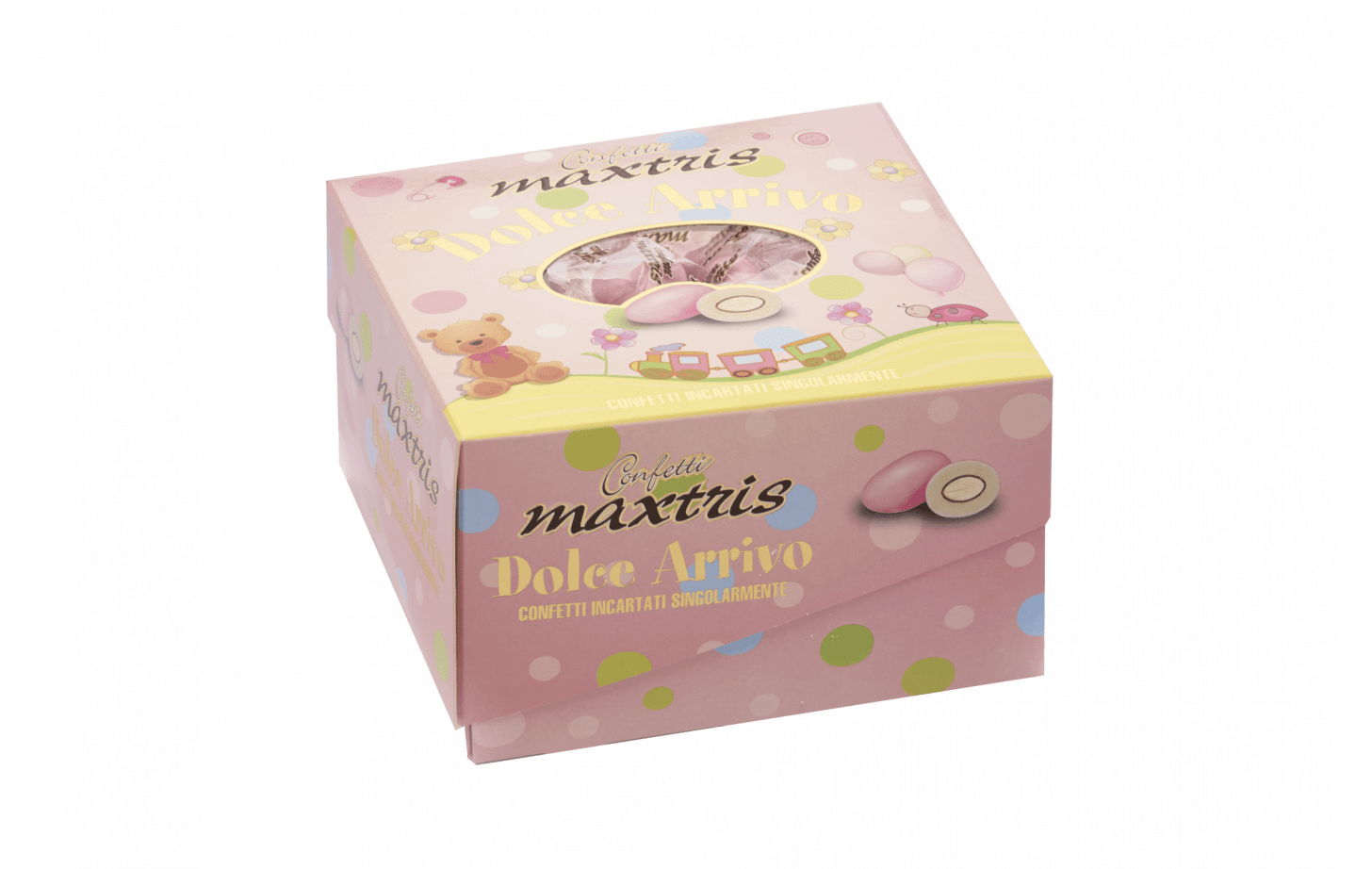 Cioccolato bianco (40%) (zucchero, latte intero in polvere, burro di cacao. Emulsionante: lecitina di soia. Aroma naturale di vaniglia), zucchero, cioccolato fondente (19%) (zucchero, pasta di cacao, burro di cacao. Emulsionante: lecitina di soia. Aroma naturale di vaniglia), mandorle tostate (18%), maltodestrina. Coloranti: E171, E120. Agenti di rivestimento: cera carnauba (E903), cera d’api (E901). Può contenere nocciole, noci, noci di pecan, noci di acagiù (o anacardi), pistacchi e arachidi.