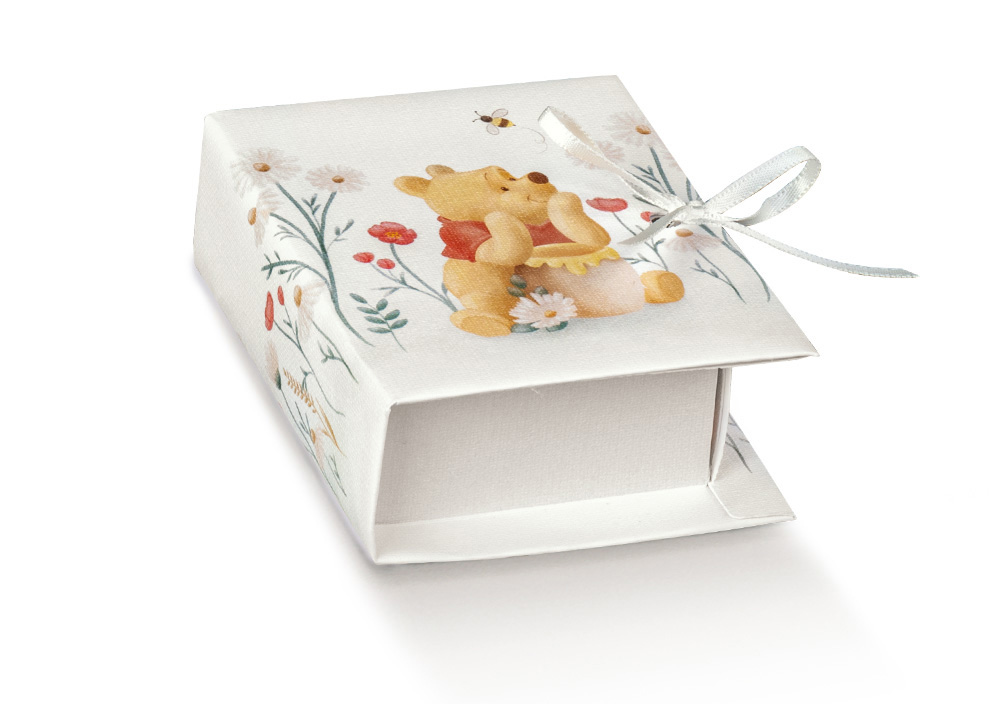 Scatola in cartoncino teso per confezionare confetti, piccoli oggetti. E’ provvista di fori che permettono la legatura con nastro.