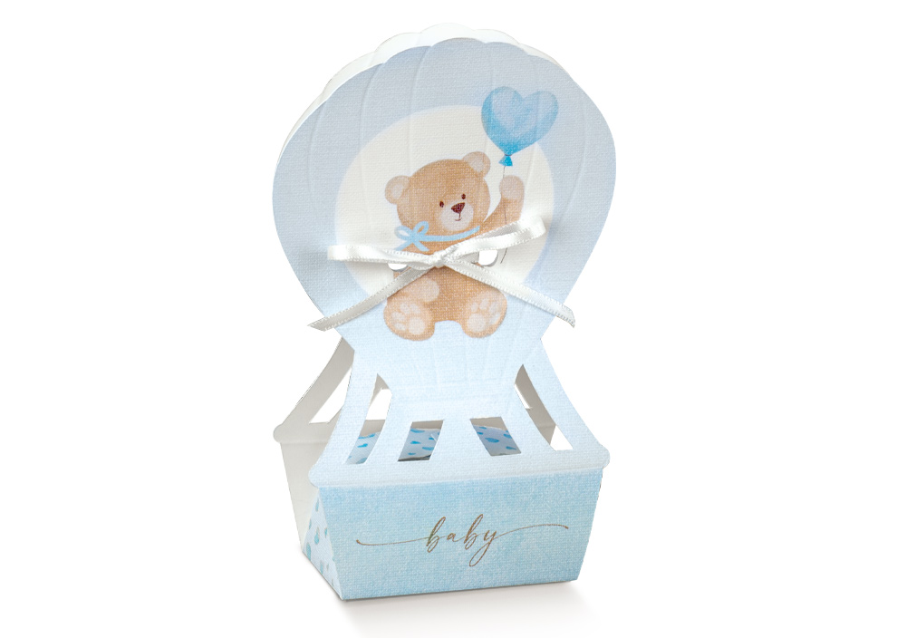 Scatola a forma di mongolfiera, bifacciale, per contenere confetti, prodotti dolciari, articoli regalo.